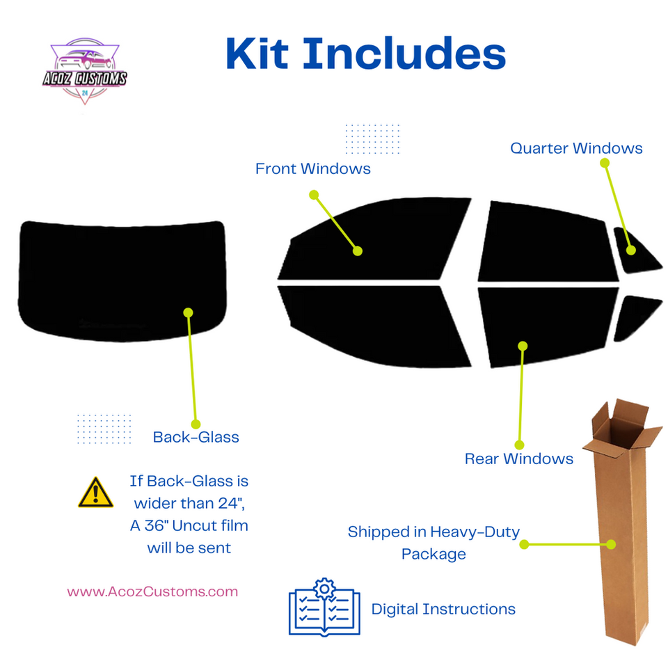 Each kit arrives pre-cut and labeled for your side and rear windows. Just peel, align, and apply. Professional results, right at home.